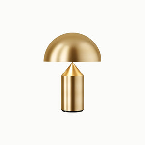 Designed by Vico Magistretti in 1977, Atollo has become the archetype of table lamps over the years, winning the Compasso d’Oro award in 1979 and completely transforming our perception of the classic bedside lamp. Composed of geometric shapes—cylinder, cone, and hemisphere—it creates a product that is both decorative and minimalist, disconnected from any historical period or contemporary trends, and has now fully established itself as an icon of Italian design. Atollo is available in three different sizes and a variety of finishes: white, black, satin bronze, or satin gold metal.
