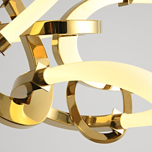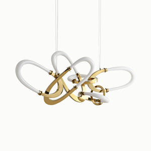 The chandelier is one of the most innovative and visually striking designs in the furniture line. It features an elegant chain of interlocked circular pendants made of solid bronze, paired with contoured hand-blown Murano glass. When illuminated, the chandelier creates an almost magical illusion, with the interlinked pendants appearing to suspend in mid-air. It is available in custom sizes and a variety of finishes.