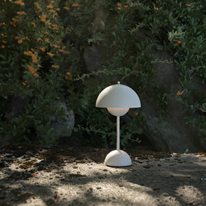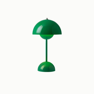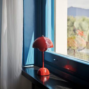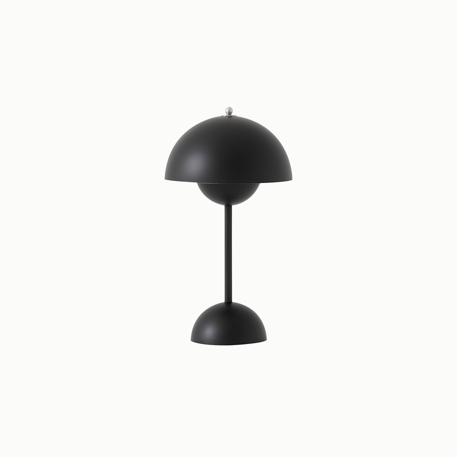 Among the most norm-breaking Danish designs of the 1960s, Verner Panton's Flowerpot is renowned for its iconic form. The series now includes seven different models. We are pleased to collaborate closely with the Panton family to introduce five new vibrant colors for 2023: Cobalt Blue, Swim Blue, Vermilion Red, Tangy Pink, and Dark Plum. Slightly smaller in size than the table lamp version, the portable VP9 is deliberately lightweight and comes equipped with a USB charging cable, bringing a cozy atmosphere to both indoor and outdoor settings.