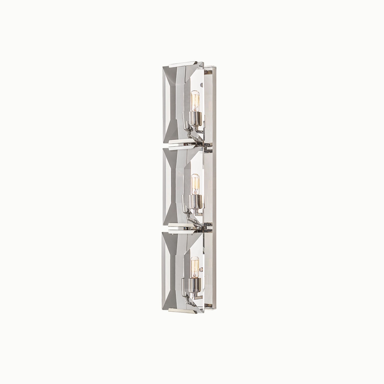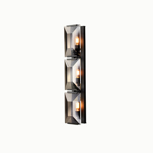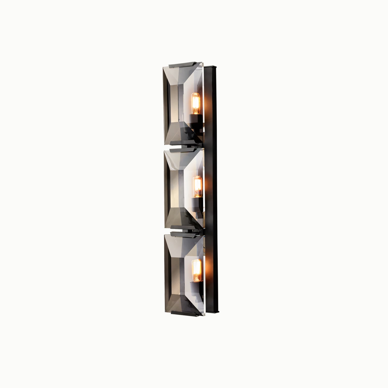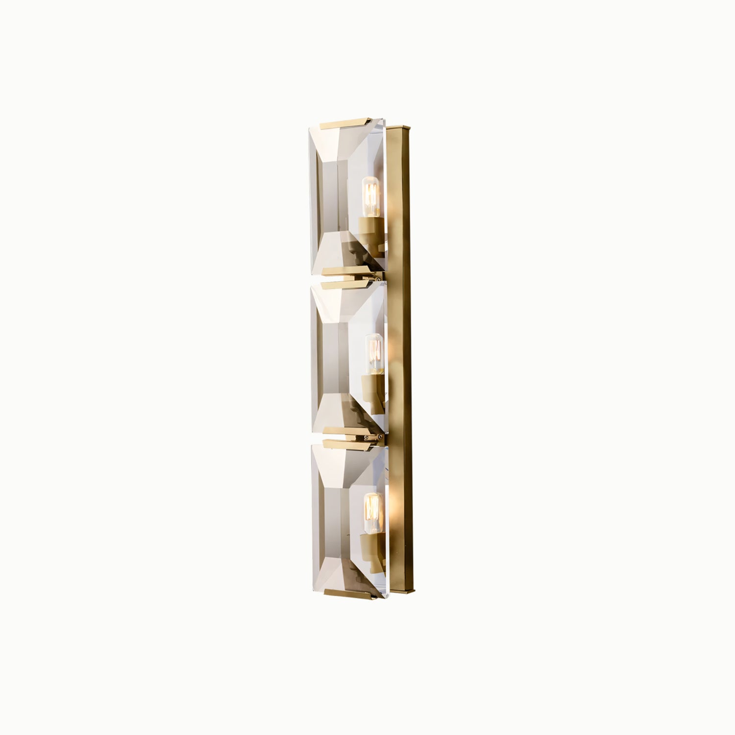 Our lighting fixtures are inspired by 1970s German chandeliers, evoking the boldness and glamour of that era. The cut crystal glass prisms reflect and refract light, capturing the essence of emerald-cut diamonds.