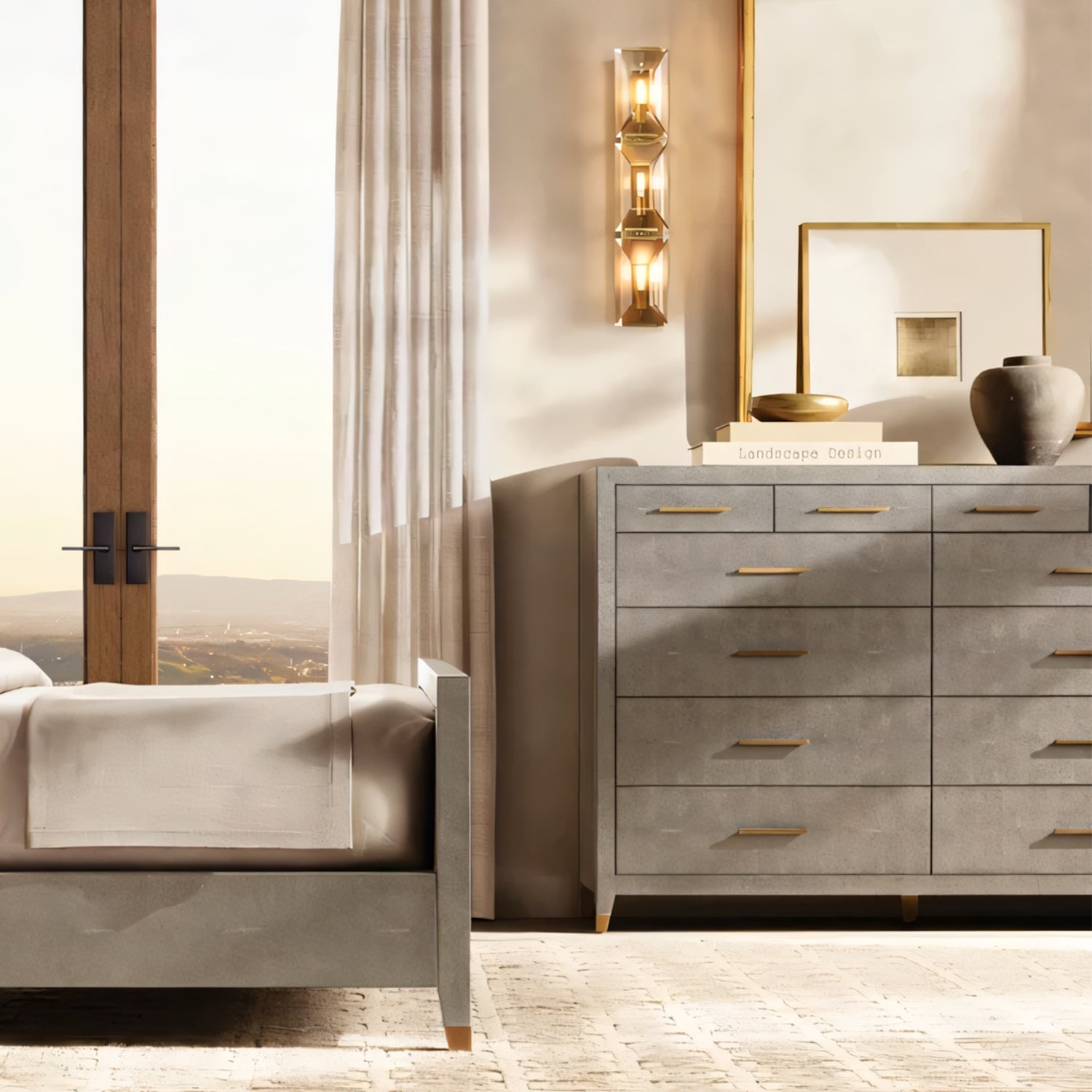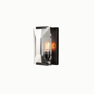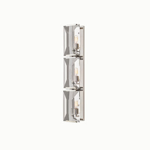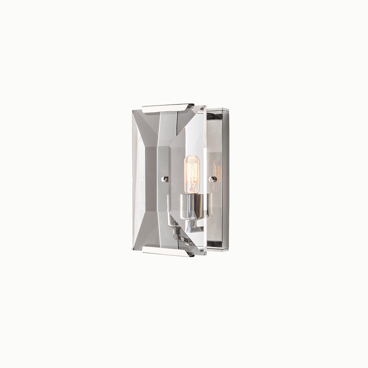 Our lighting fixtures are inspired by 1970s German chandeliers, evoking the boldness and glamour of that era. The cut crystal glass prisms reflect and refract light, capturing the essence of emerald-cut diamonds.