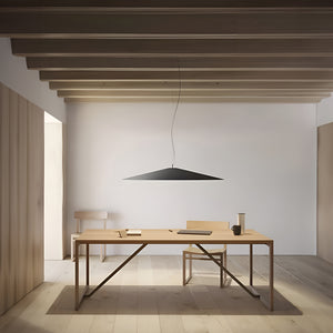 The pendant light series is characterized by elegance and purity in form. Its shapes are highly versatile, adapting to various environments. The light source features a specially designed mineral lens that distributes a homogeneous and distinct light beam, creating a broad cone of light with clearly defined edges.