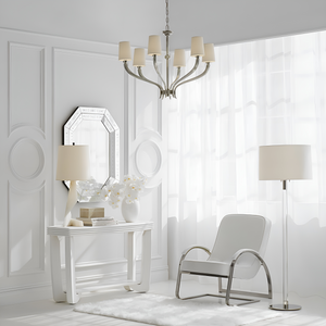 The elegant series offers a variety of lighting options for almost any space in the home. Pendants, chandeliers, wall sconces, and even ceiling fans come in a range of stylish finishes, featuring ribbed details and refined paper or glass shades that provide sophisticated lighting.