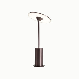 This table lamp seamlessly blends visual comfort with ambient lighting needs. Its spherical central joint allows for maximum freedom in light adjustment, despite the compact size of its base, making it suitable for both large tables and smaller surfaces. The iconic flat diffuser can be tilted in any direction, providing warm and relaxing light for any setting.