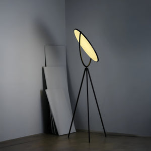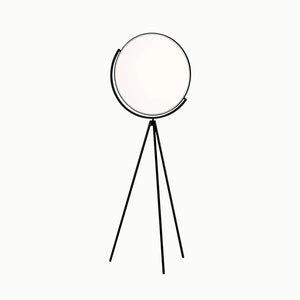 SUPERLOON is an adjustable floor lamp that provides direct light. The body is made of painted or chrome-plated aluminum, featuring a metal spinning head, die-cast joints, and an extruded stem. It has a silk-screened PMMA diffuser and utilizes edge lighting technology for its light source.