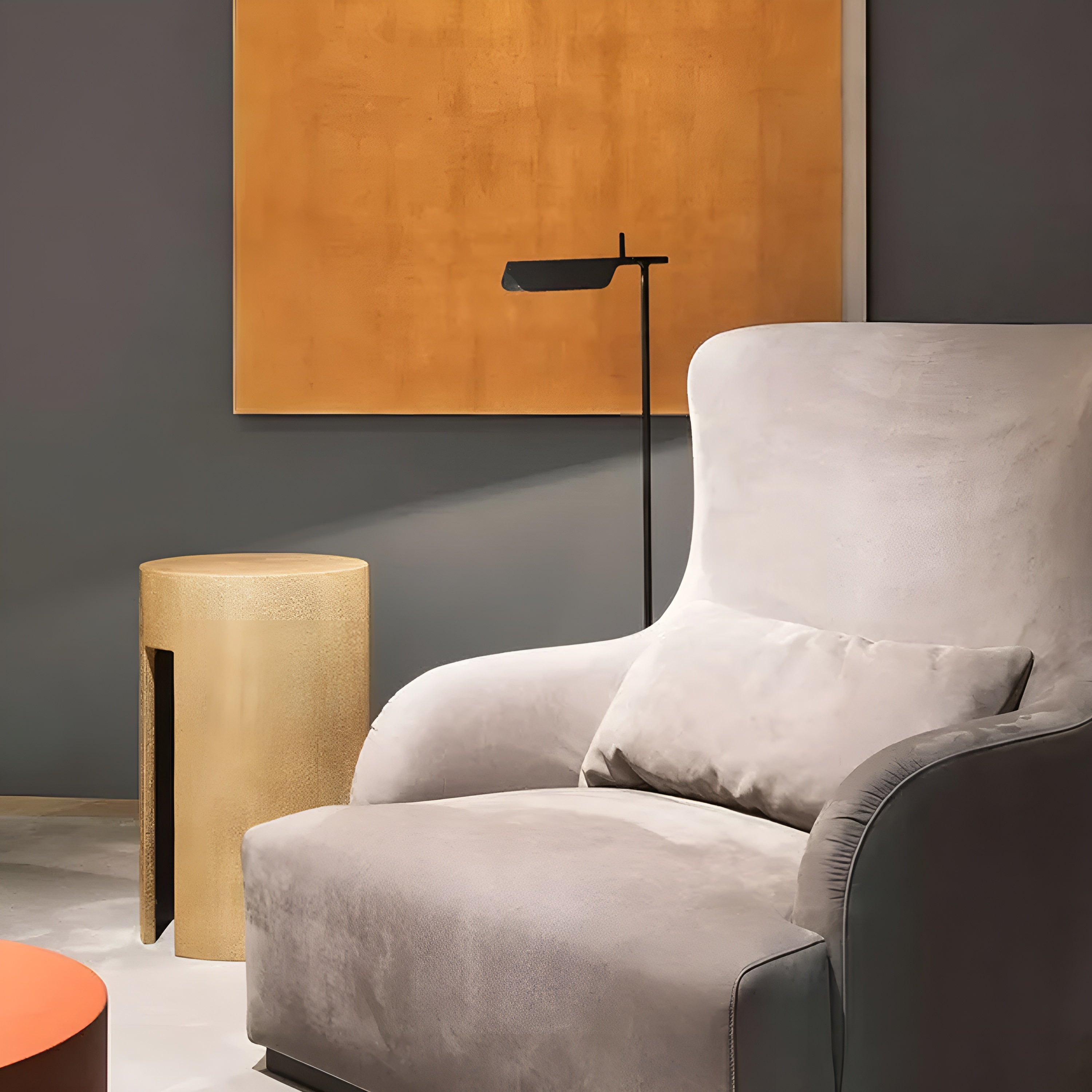 TAB F is a floor lamp that provides direct lighting with an adjustable head. The body is made of painted die-cast aluminum. The multi-LED diffuser is made from specially designed PMMA to avoid the multi-shadow effect and glare.