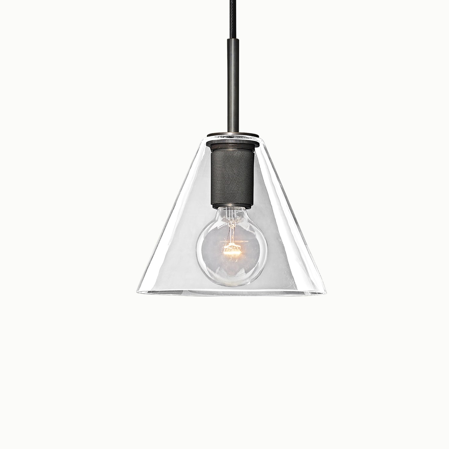 The series is an upgraded version of the bare bulb, combining polished surfaces with simplicity to embody the principles of industrial minimalism. The finely crafted diamond knurled texture on the base, the striking filament bulb, and the simple transparent glass lampshade together create a subtle, understated accent.